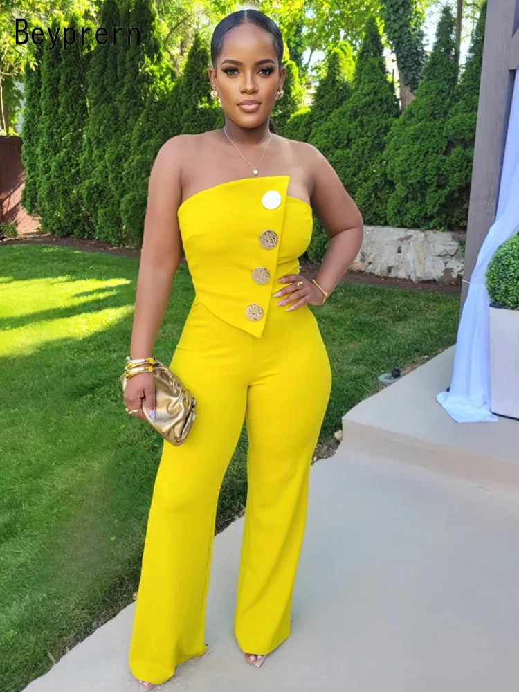 Monos elegantes con hombros descubiertos para mujer, ropa Irregular con detalles de botones, monos ajustados, ropa de noche para discoteca.