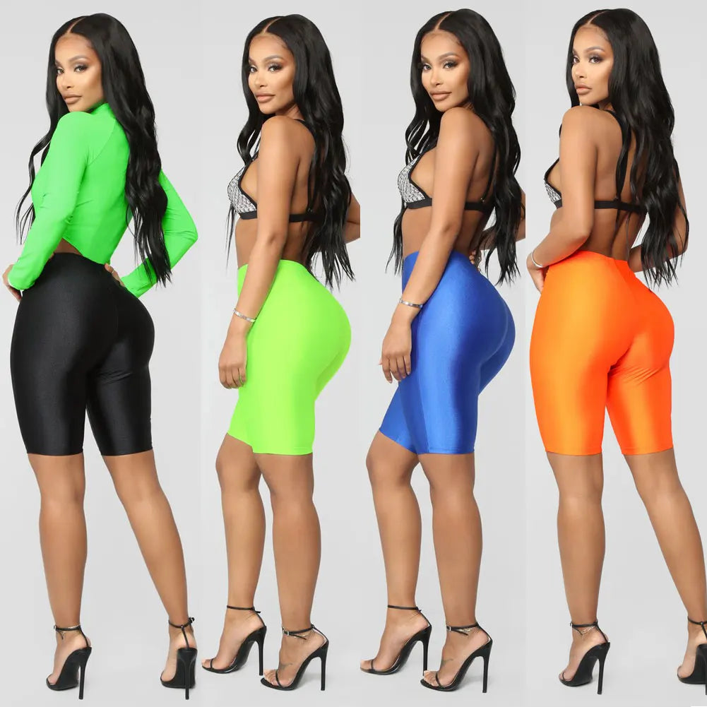 Pantalones cortos elásticos para mujer, mallas de licra para entrenamiento, longitud hasta la rodilla, para Yoga, S, M, L, XL