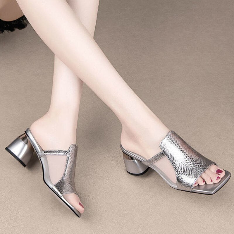Sandalias de lujo para mujer, zapatos de tacón medio grueso, informales, con talón descubierto.